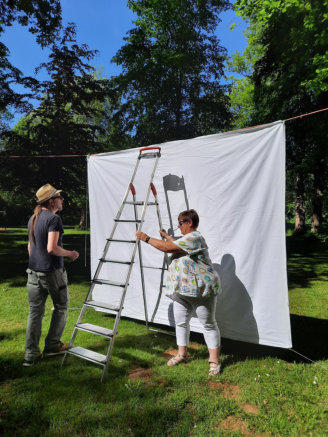 die Komparsinnen auf ihren Einsatz.