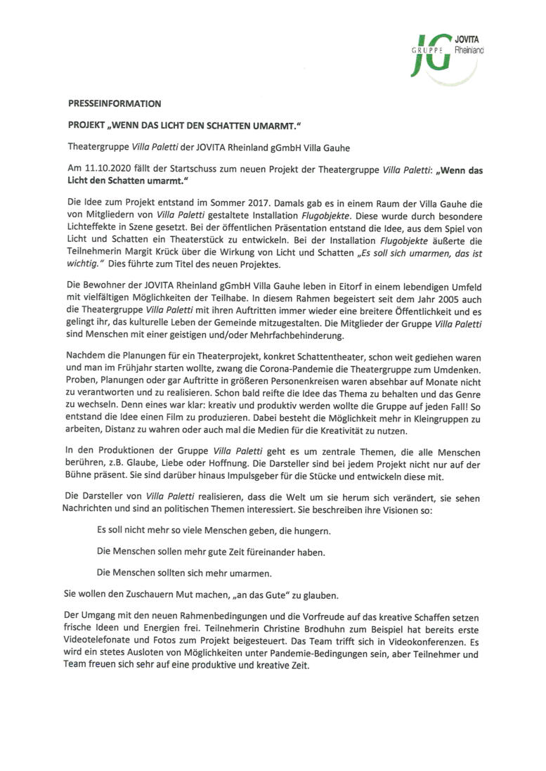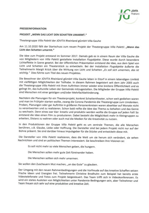 11.10.2020Presseinformation zum Start des neuen Projekts der Theatergruppe(mehr dazu auf der Blogseite)